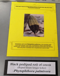 Caused by Phytopthora palmivora. Infects the tapping panel of rubber. Infects cocoa pods during wet weather. Symptoms of black lesions causing pods to rot within days. Fungus can also infect the cocoa main stem and causing stem canker.